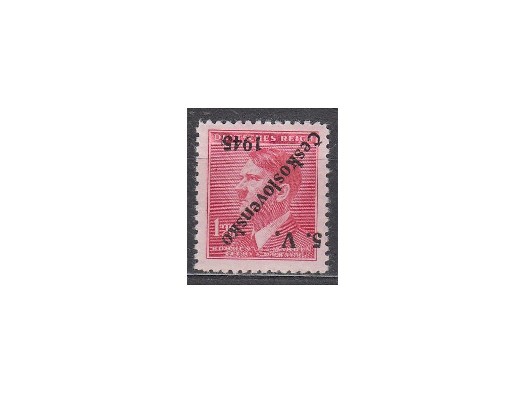 1.20K Hitler, obrácený přetisk 5.V. ČESKOSLOVENSKO 1945, **