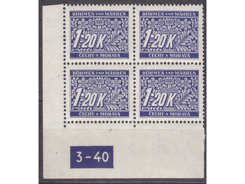 Doplatní známka 1.20K modrá, levý roh. 4blok s DČ 3-40, varianta Y, Nr.DL10, **