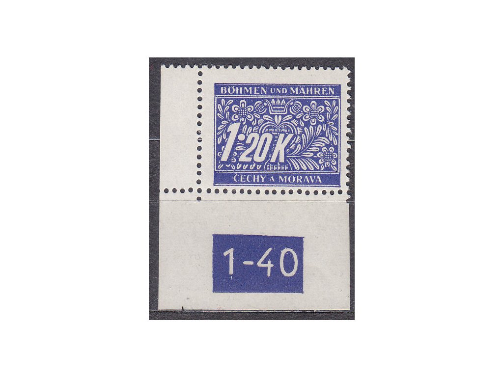 Doplatní známka 1.20K modrá, levý roh. kus s DČ 1-40, varianta X, Nr.DL10, **