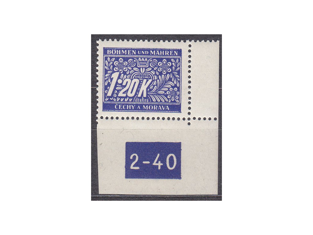 Doplatní známka 1.20K modrá, pravý roh. kus s DČ 2-40, varianta X, Nr.DL10, **