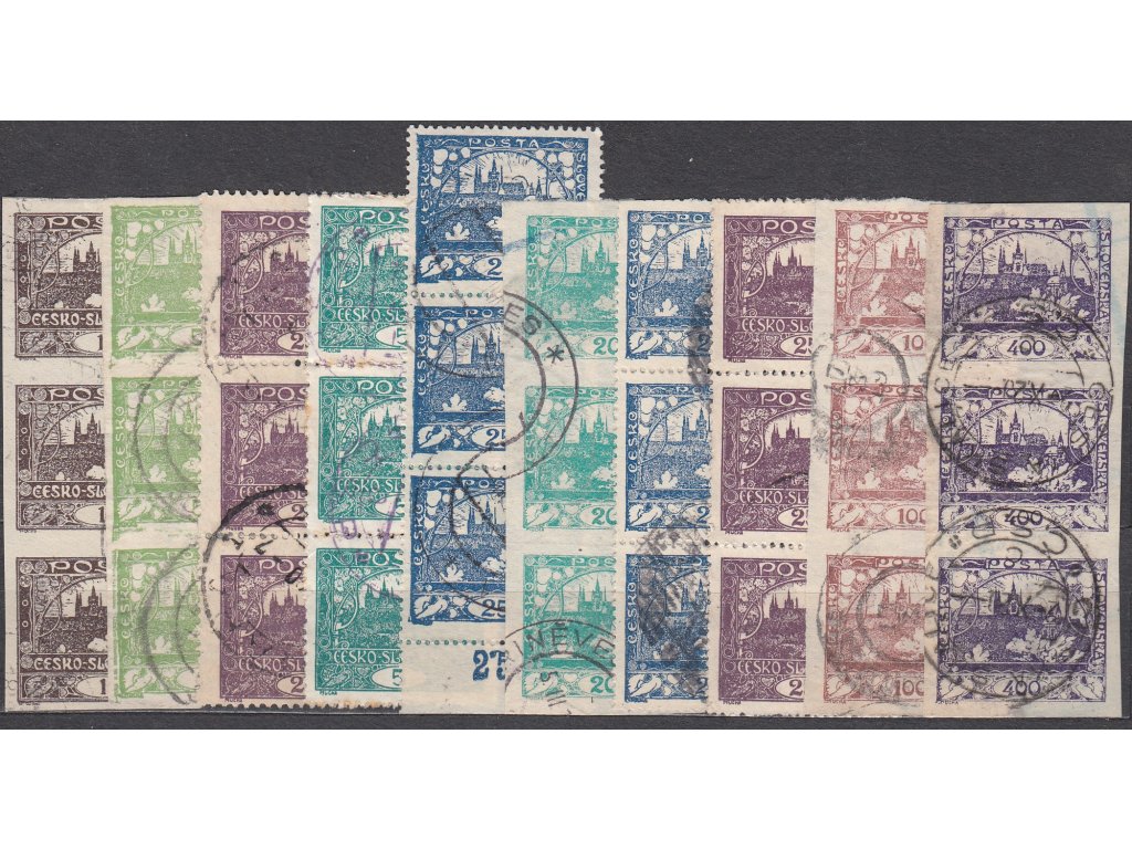 1-400h Hradčany, 10 ks svislých 3pásek, různé hodnoty, razítkované