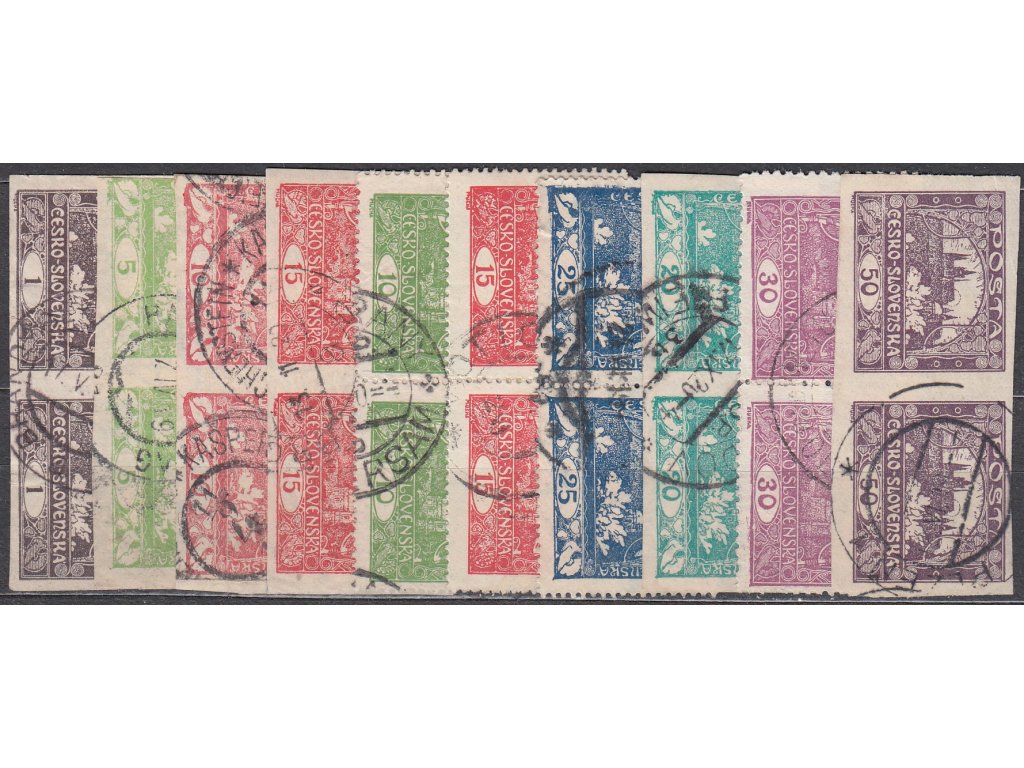 Známky Hradčany 1-50h, 10 ks vodorovných 2pásek, různé hodnoty, razítkované