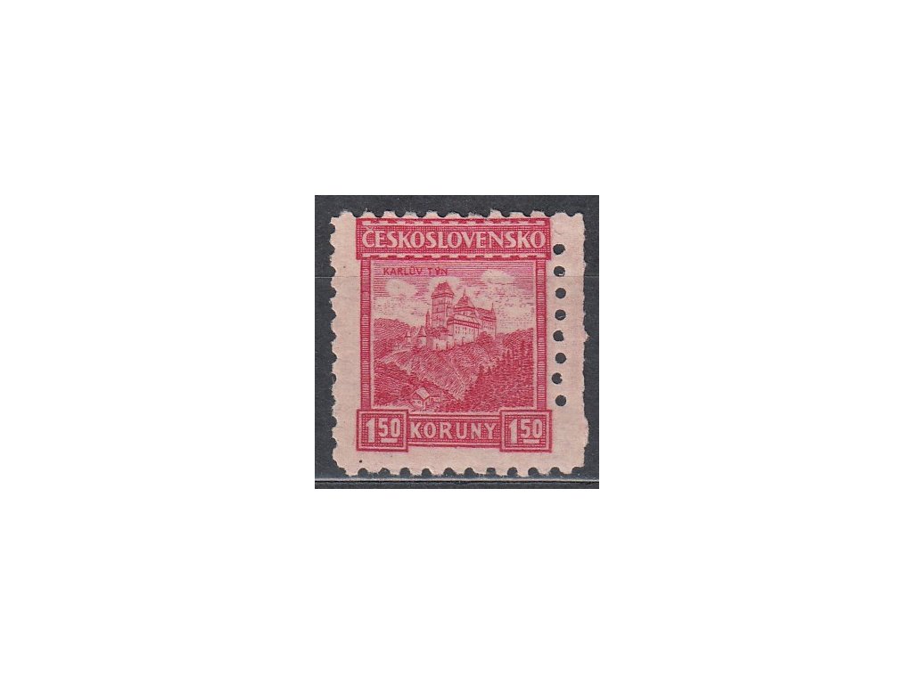 Poštovní známka 1.50Kč Karlštejn, pr.6, krajový kus s vynech. perf. otvory, Nr.214, * po nálepce