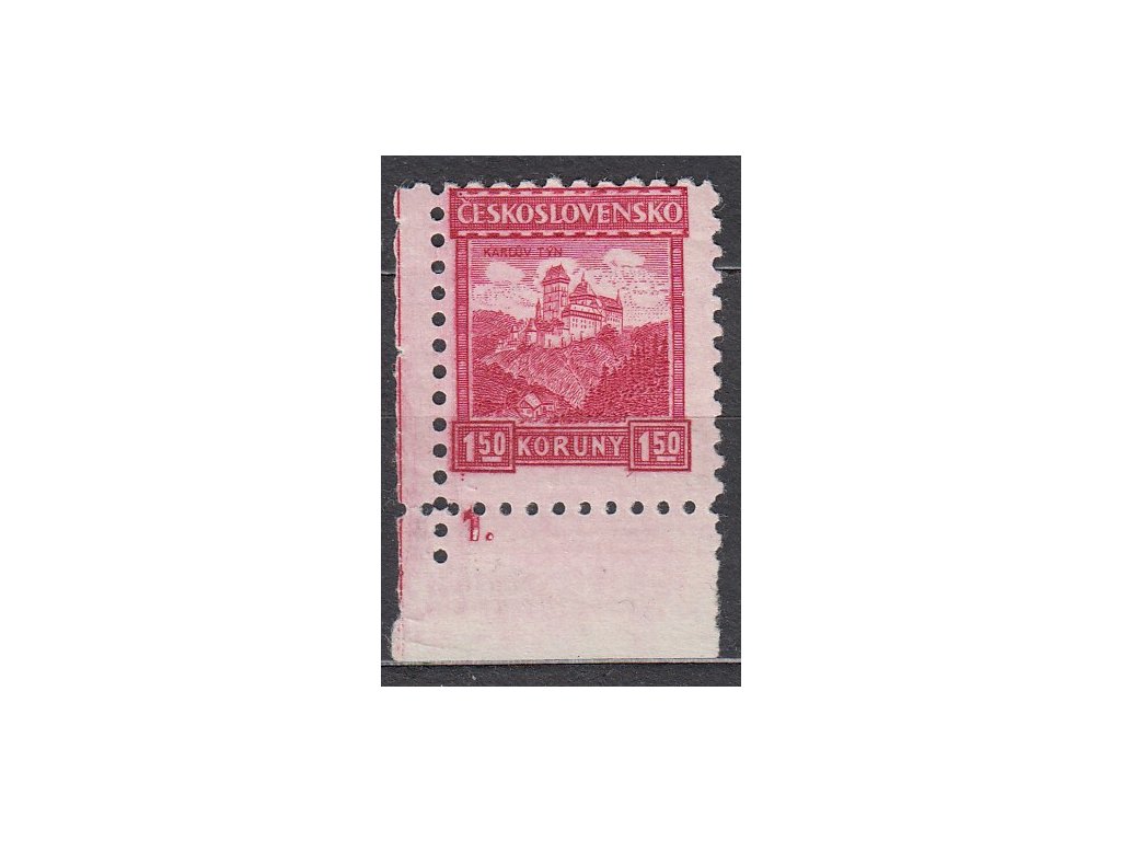 Poštovní známka 1.50Kč Karlštejn, rohový kus s DČ 1 - lep bez pruhů, zk.Vrba, Nr.220a, **