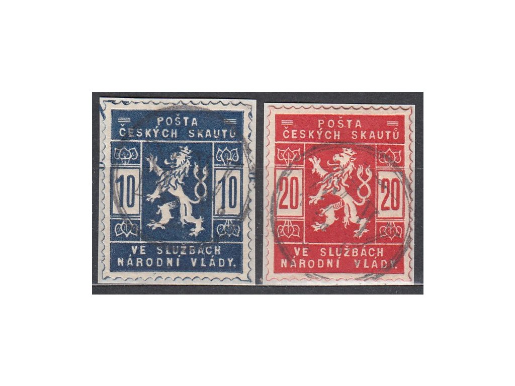 Poštovní známky 10-20h série, výstřižky, Nr.SK1-2, razítka N.V.