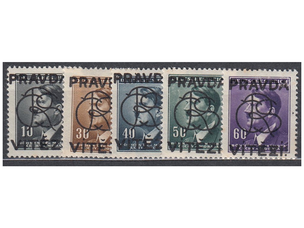 Poštovní známky 10-60h Hitler, 5 hodnot s přetiskem PRAVDA VÍTĚZÍ, **