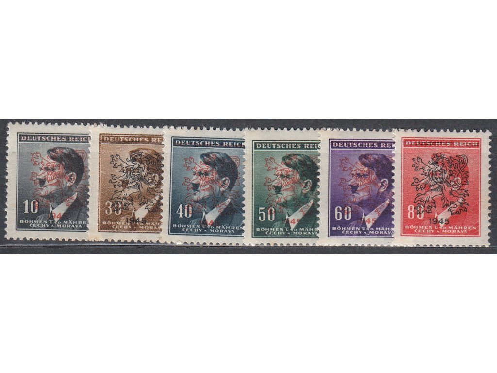 10-80 Hitler, 6 hodnot s přetiskem "lev" 1945, **