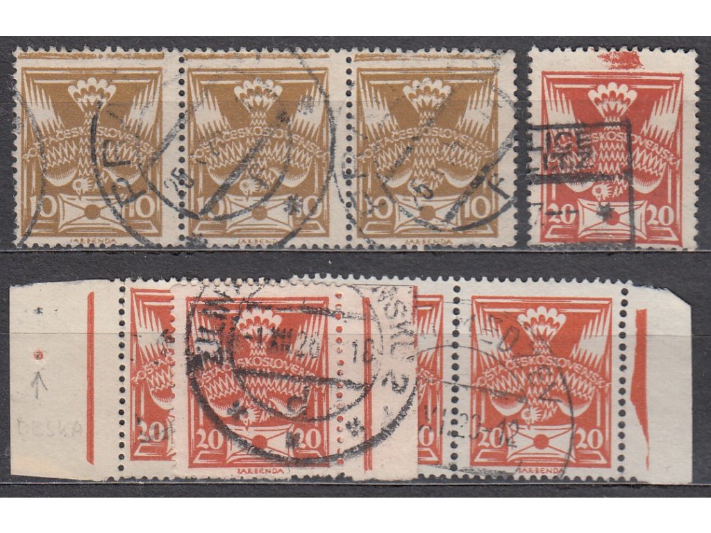Poštovní známky 10 a 20h Holubice, zn. a pásky, nevyčištěné mezery, okraje, razítkované