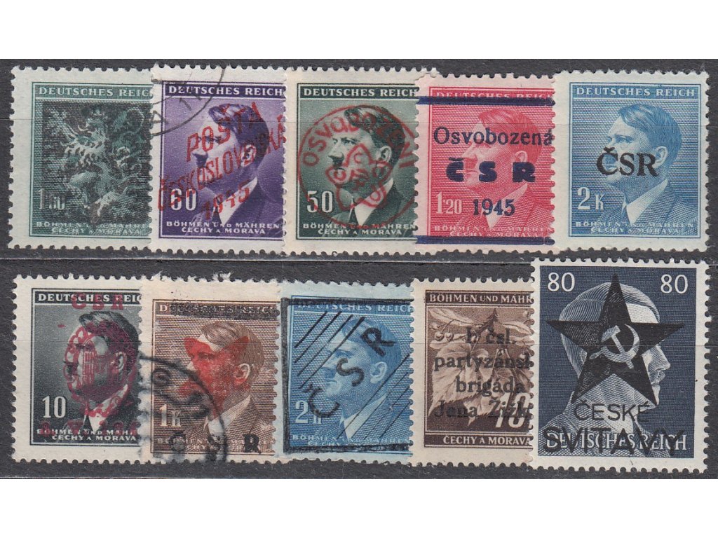 Poštovní známky, 10 ks hodnot s revolučními přetisky, různé hodnoty a přetisky, **/*/razítkované
