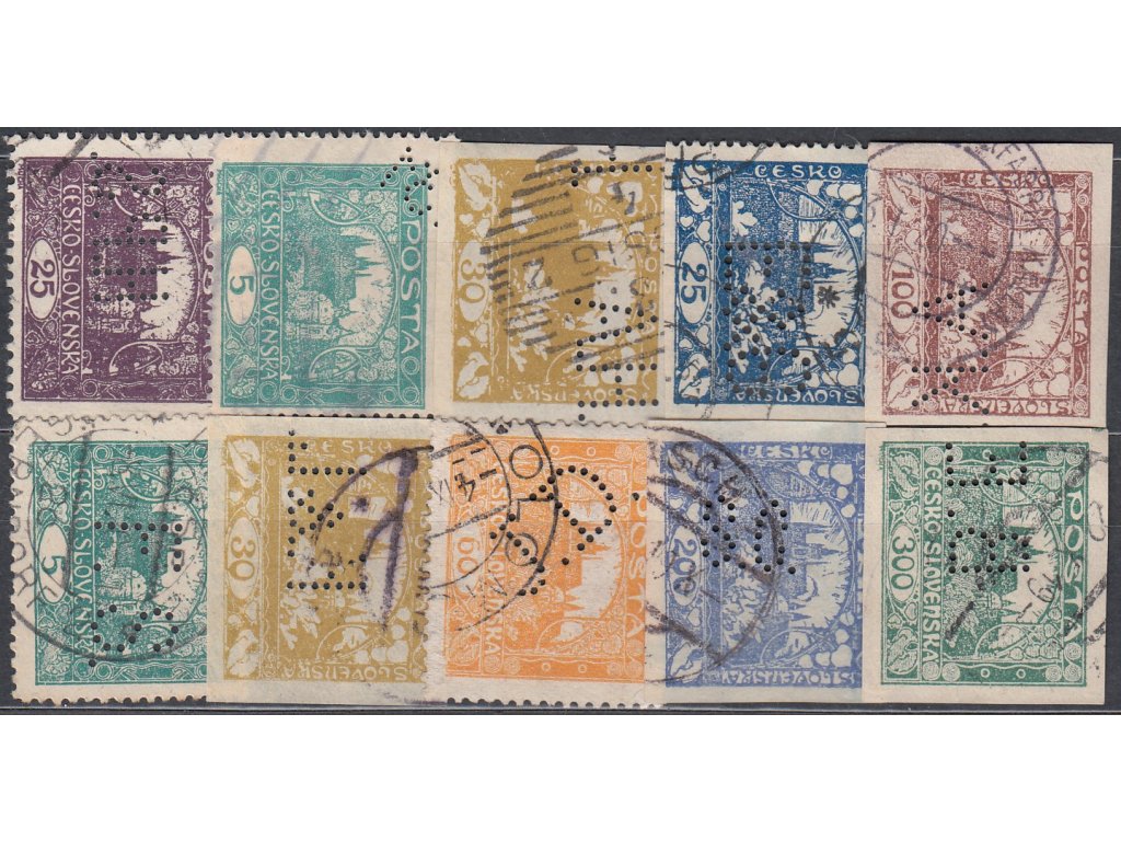 Poštovní známky, 10 ks různých hodnot Hradčan s perfiny, každý jiný, razítkované