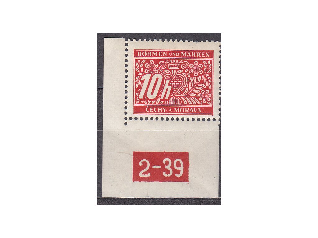 Doplatní známka 10h červená, levý roh. kus s DČ 2-39, varianta Y, Nr.DL2, **