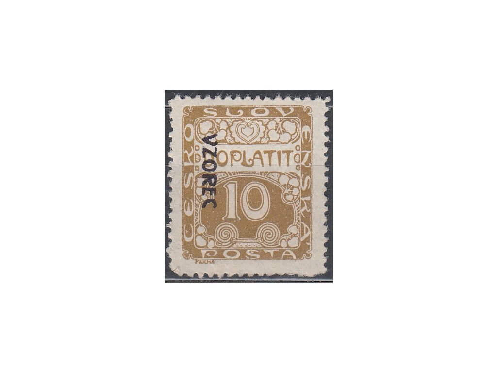 Poštovní známka 10h hnědoolivová, Řz.11 1/2, VZOREC, zk.Vrba, Nr.DL2vz, * po nálepce