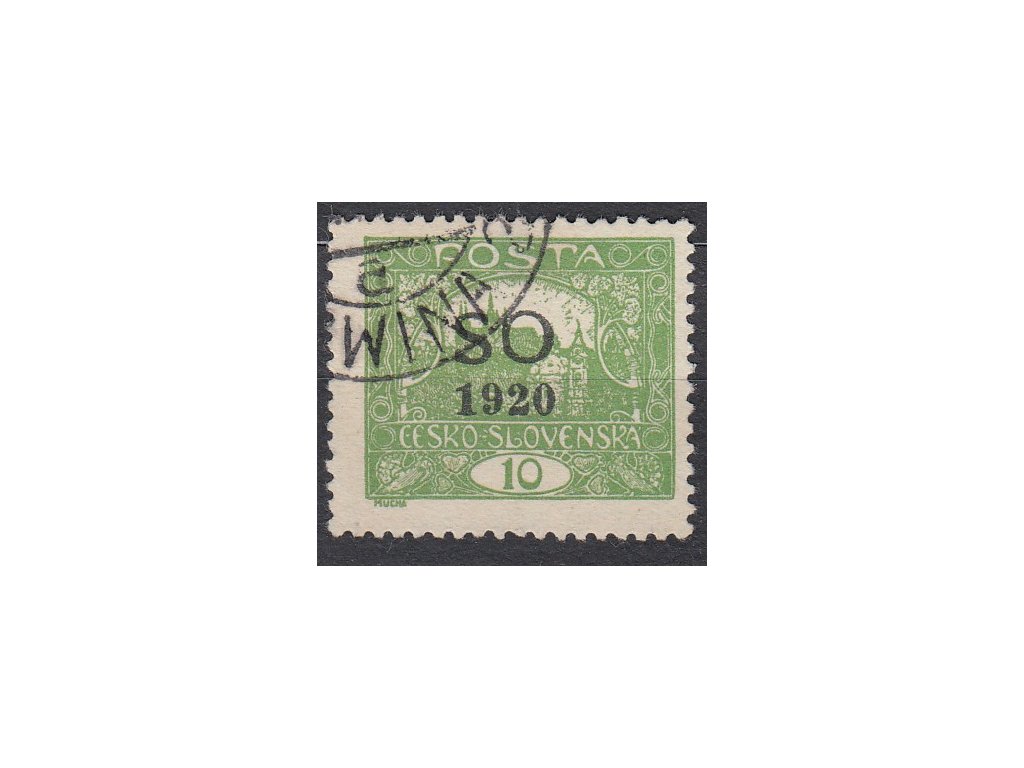 Poštovní známka 10h zelená, Hz.11 3/4, Nr.SO4C, razítkované