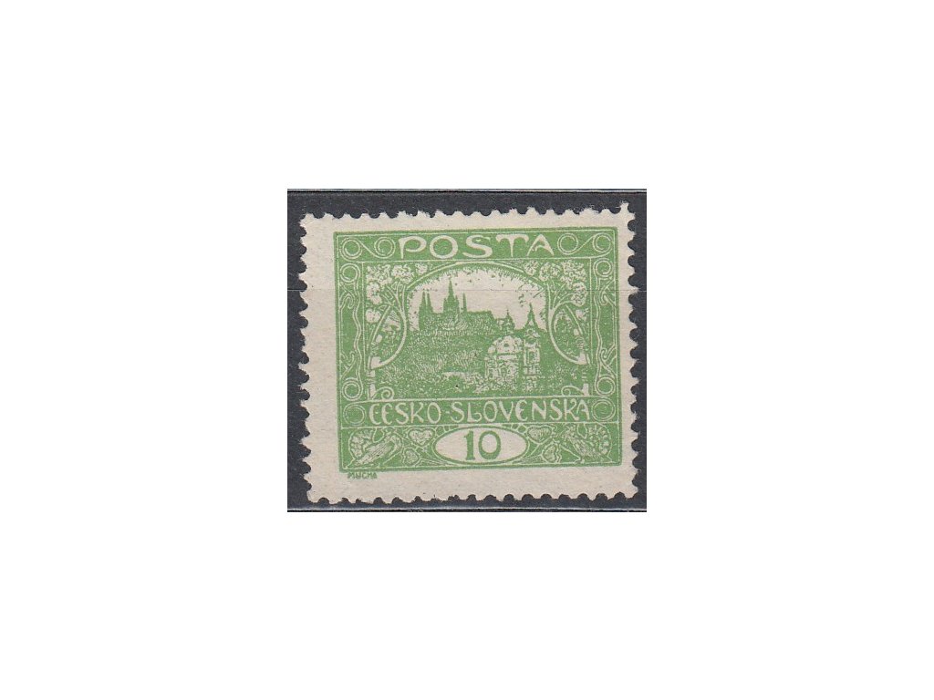 Známka Hradčany 10h zelená, Hz.11 3/4, zk.Gilbert, Nr.6B, **