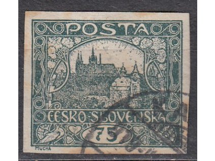 Známka Hradčany 10h zelená, Hz.13 3/4:13 1/2, Nr.6A, **, výrobní vada - dřívko v papíru, kz