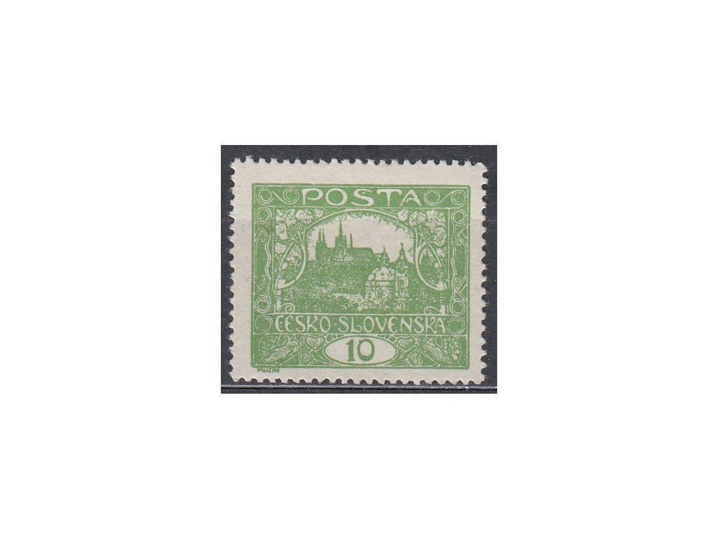 Známka Hradčany 10h zelená, Hz.13 3/4:13 1/2, Nr.6A, **
