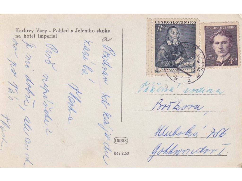 12.6.1953, DR Karlovy Vary, pohlednice zasl. do Gottwaldova, stopy stáří