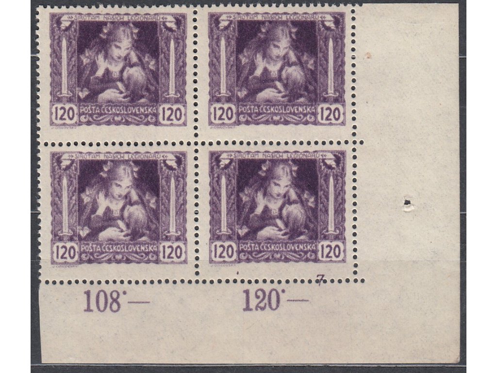 Poštovní známka 120h fialová, Hz., rohový 4blok s DČ 7, Nr.32A, **