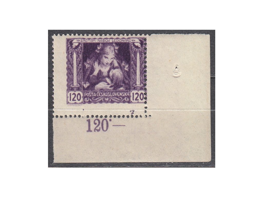 Poštovní známka 120h fialová, Hz., rohový kus s DČ 7, Nr.32A, **