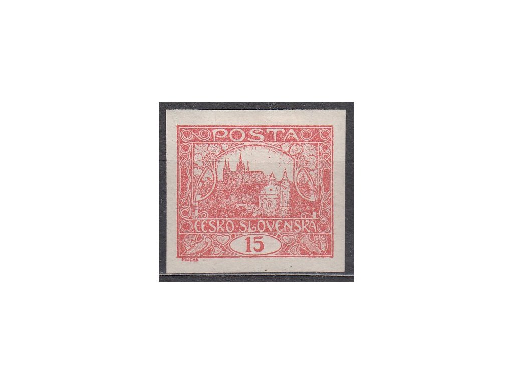 Známka Hradčany 15h cihlově červená, příčkový typ, Nr.7, * po nálepce