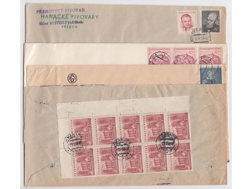 16.6.1953, 4 kusy dopisů s různými frankaturami, podlouhlé formáty, prošlé