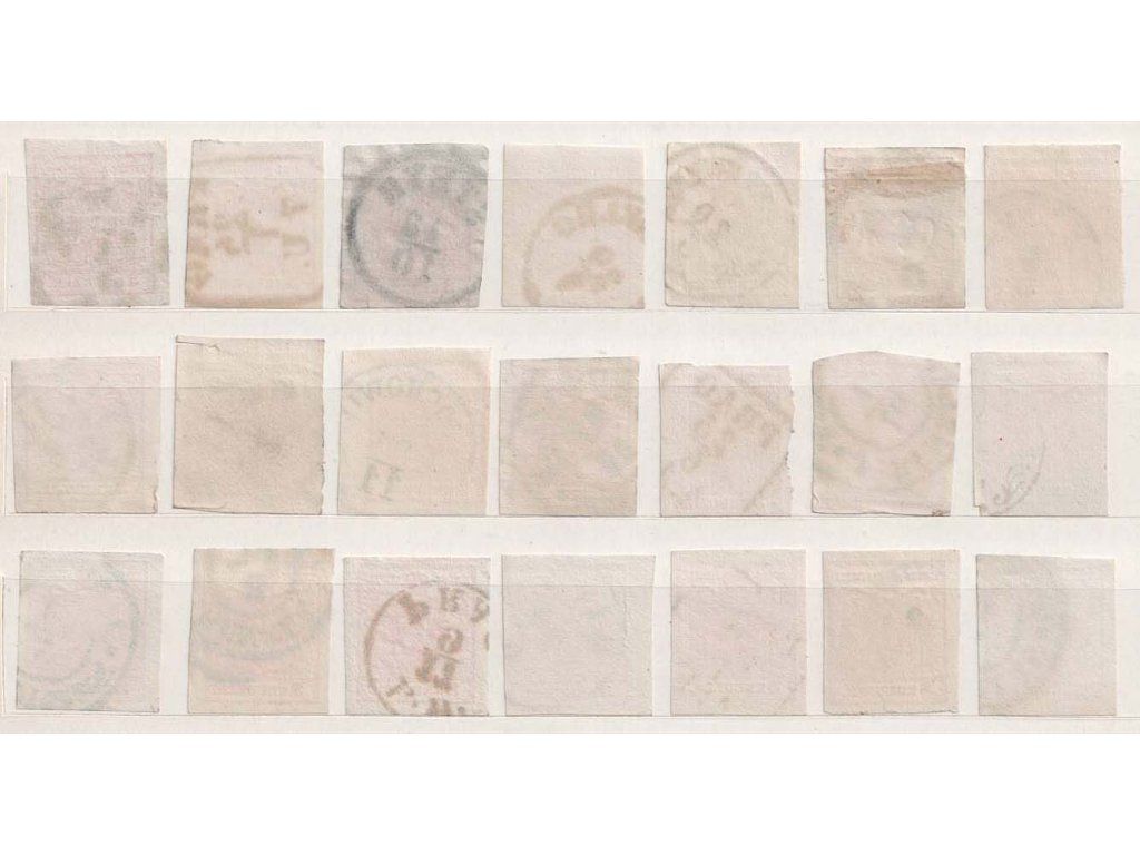 1850, 3 Kr Znak, studijní sestava 21 kusů známek, razítkované