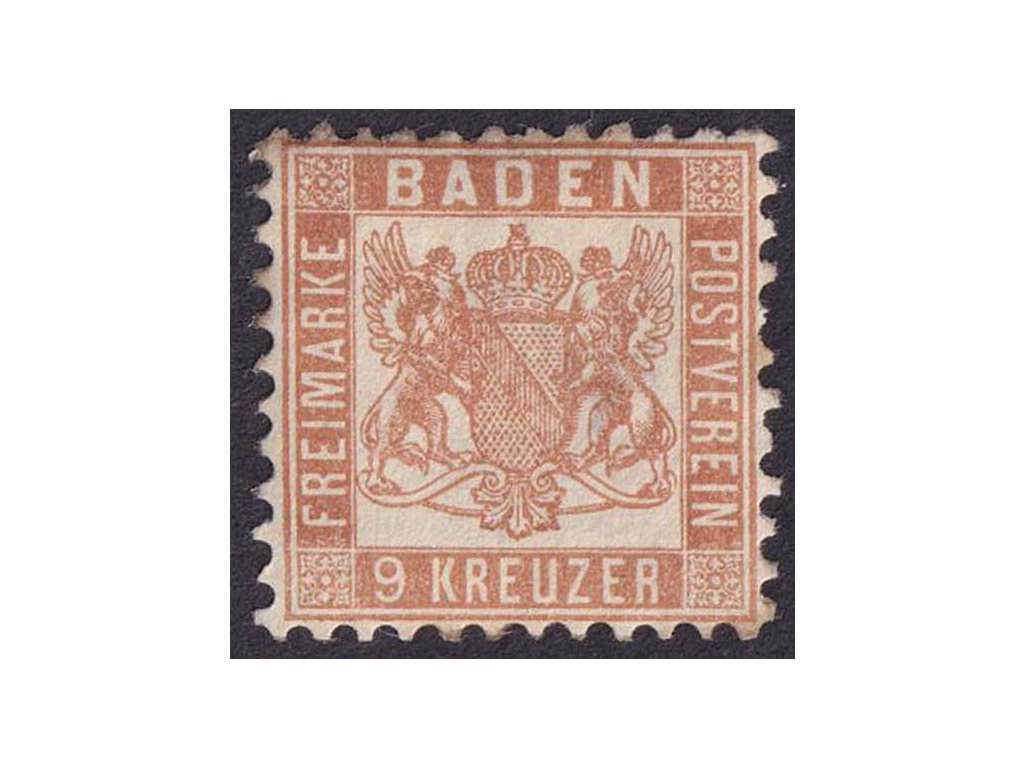 Poštovní známka, Baden, 1862, 9 Kr Znak, MiNr.20, * po nálepce, zeslabení