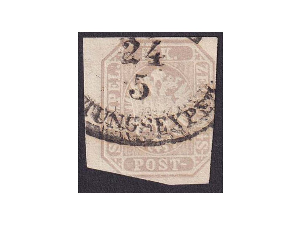 1863, 1.05 Kr šedá, průsvitka Z přes půlku známky, MiNr.29X, razítkované