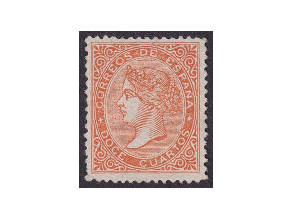 Poštovní známka, 1867, 12 Cs Isabella, MiNr.82, * po nálepce, lom, reparovaný lep - viz. foto