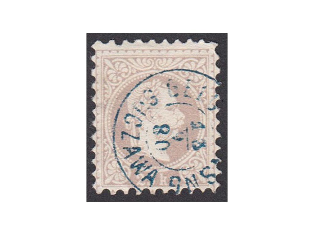 Poštovní známka, 1867, 25 Kr Franc Josef, jemný tisk, MiNr.40II, modré razítko, ohnutý růžek - viz. foto