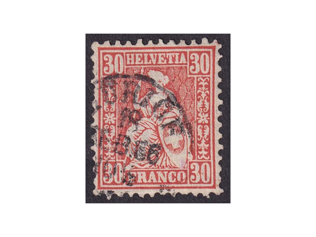 Poštovní známky, 1862, 30 C Helvetia, MiNr.25, razítkované