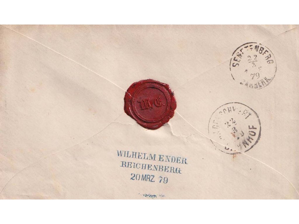Poštovní celistvost, 1879, DR Reichenberg, obálka vyfr. zn. 15 Kr Franc Josef, stopy pošt. provozu