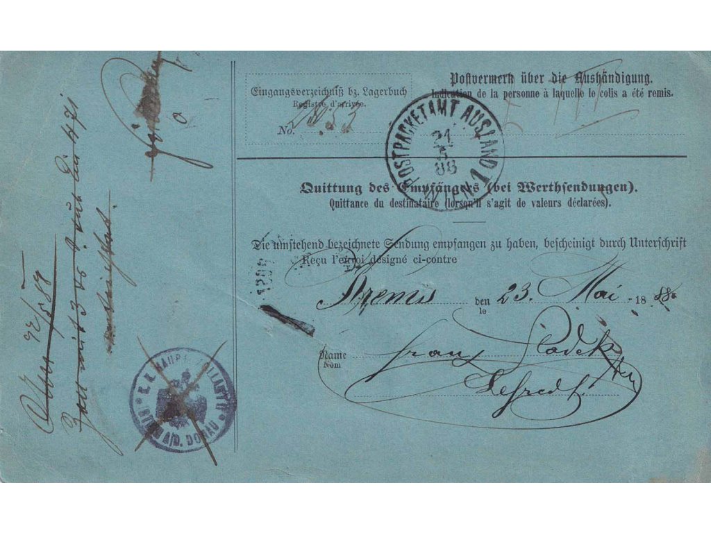 1888, DR Dresden-Blasewitz, kompletní dobírkový formulář, prošlé