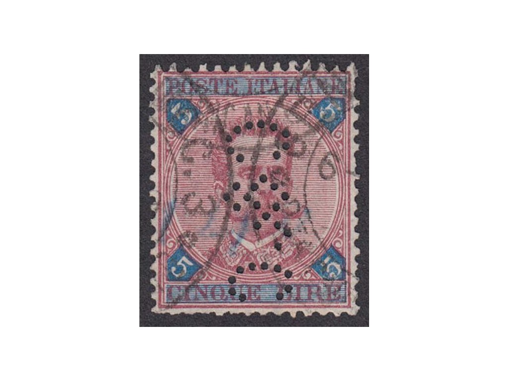 Poštovní známka, 1891, 5 L Umberto, MiNr.59, razítkované, perfin, kvalita - viz. foto