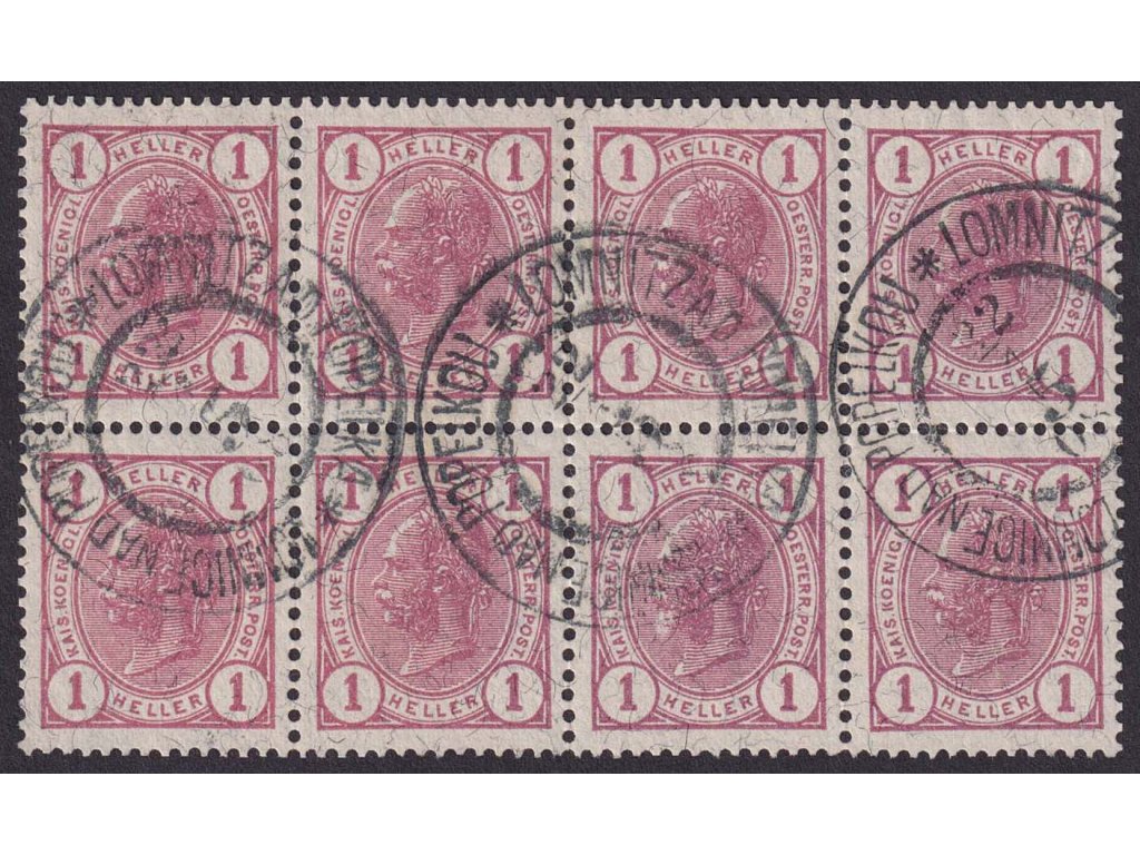 Poštovní známka, 1899, 1 H Franc Josef, 8blok, MiNr.69, razítkované, lehce natrženo v perforaci
