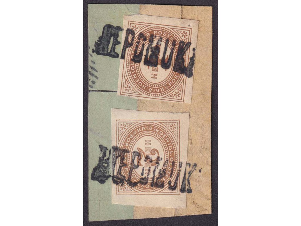 Poštovní známka, 1899, 2 + 2 H doplatní, razítko NEPOMUK, MiNr.11, výstřižek, mírné stopy stáří