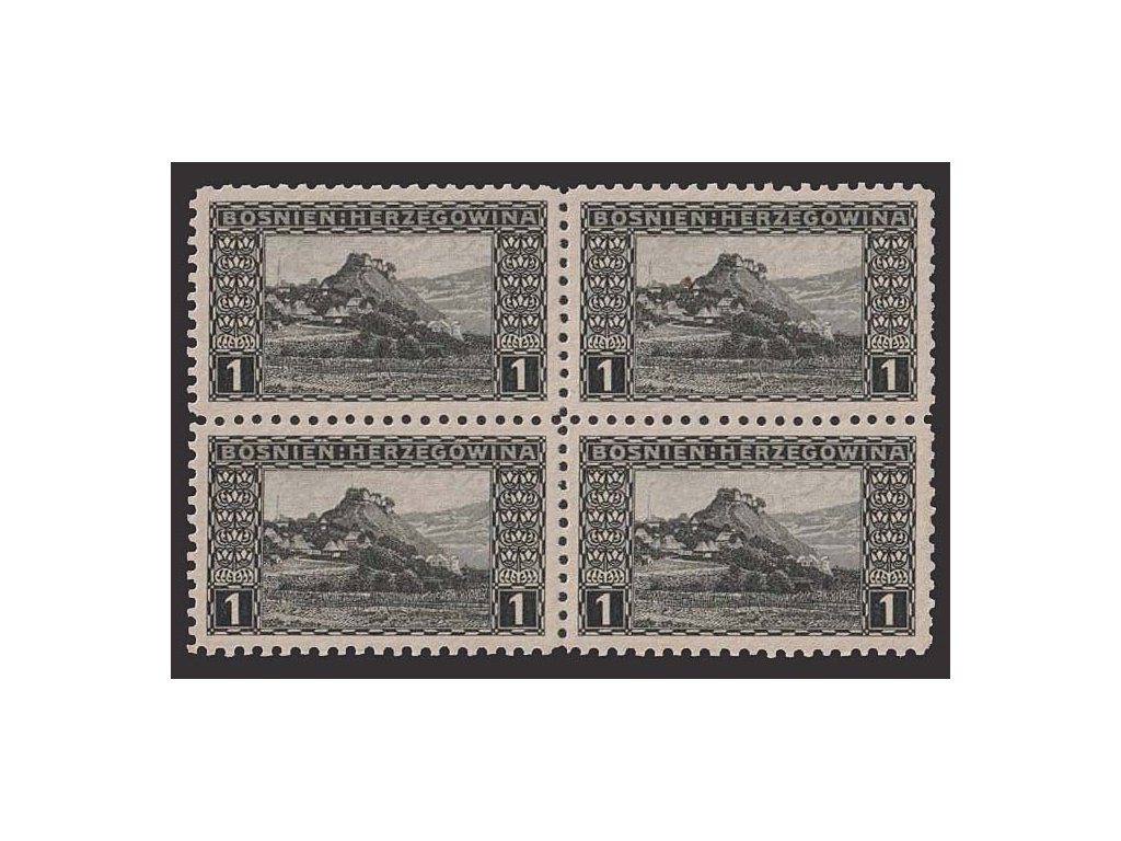 Poštovní známka, Bosna, 1906, 1 H Krajinka, L 9 1/4, 4blok, MiNr.29C, **
