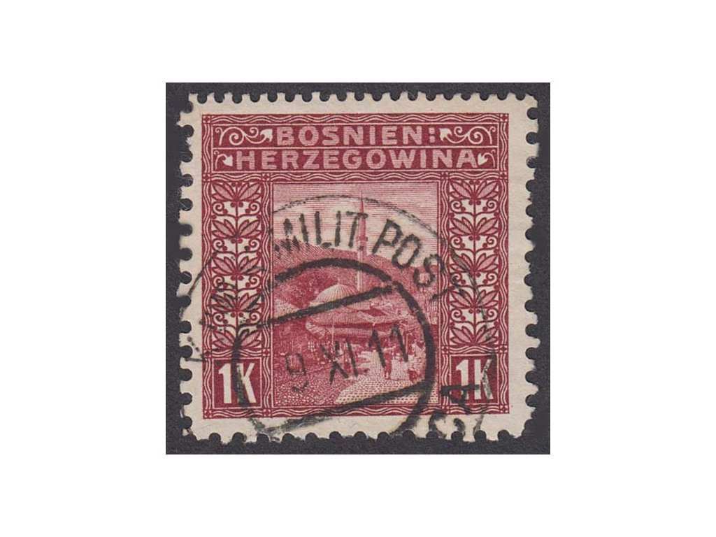 Poštovní známka, 1906, 1 Kr Mešita, smíšené zoubkování, MiNr.42, razítkované