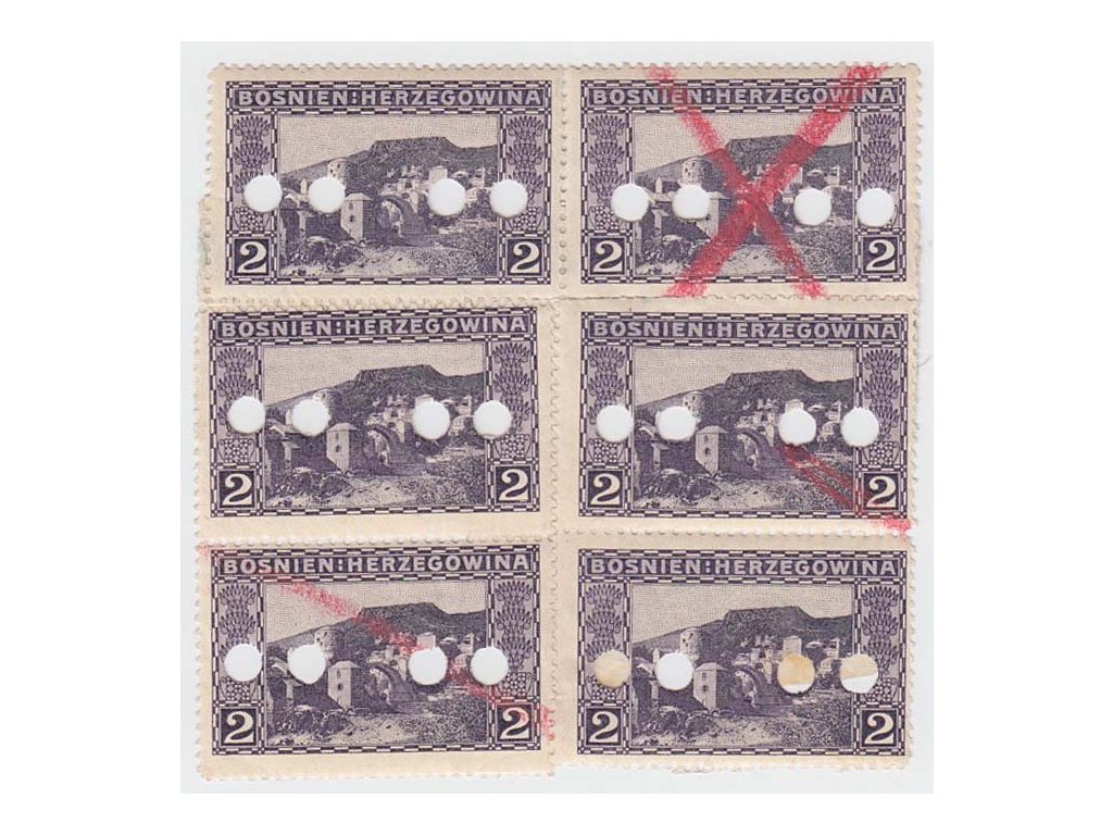 1906, 2 H Krajinky, 6blok s perforačními otvory, MiNr.30, * po nálepce