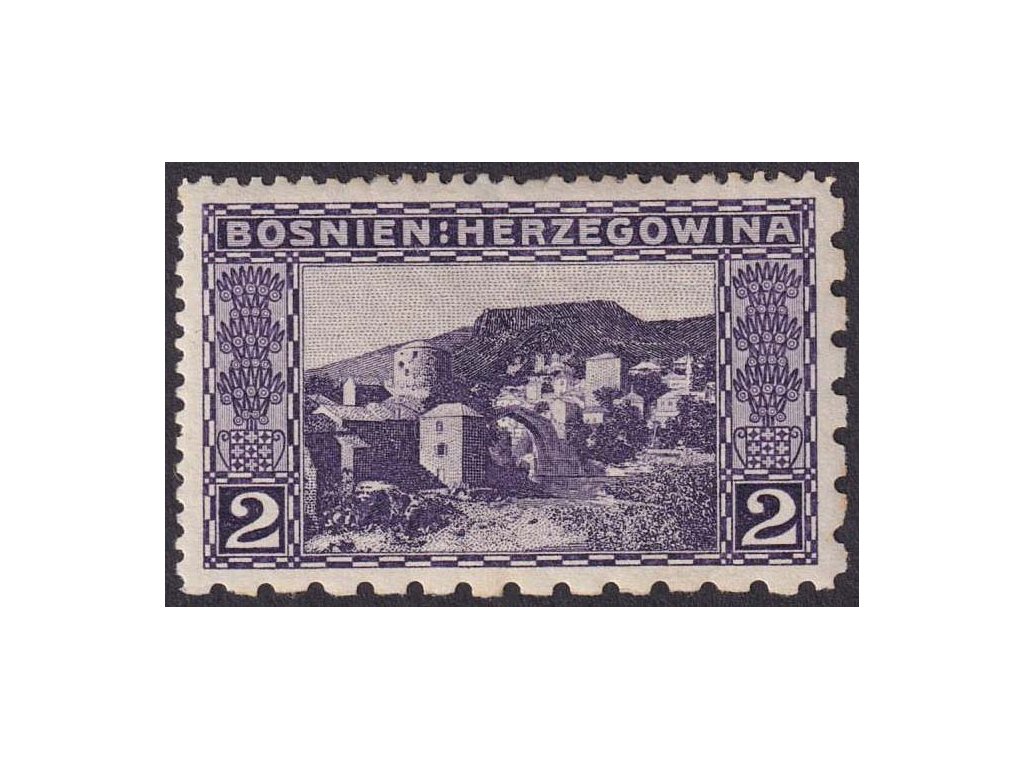 Poštovní známka, 1906, 2 H Mostar, smíšené zoubkování, MiNr.30, * po nálepce