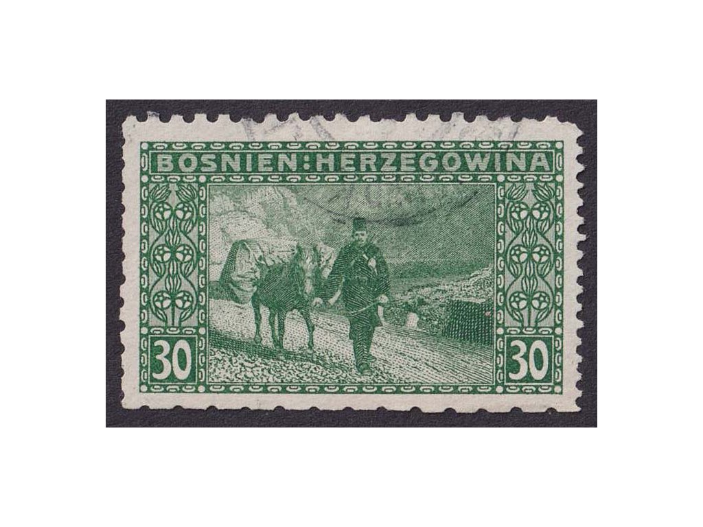 Poštovní známka, 1906, 30 H Pošťák, smíšené zoubkování, MiNr.37, razítkované, krátké zoubky