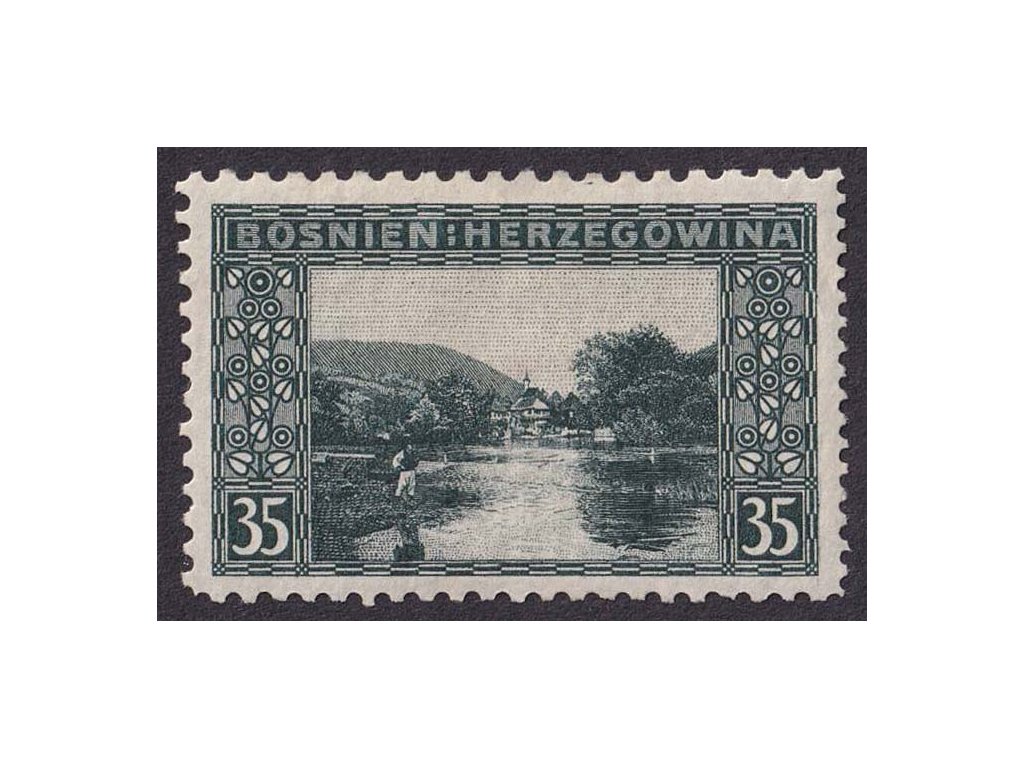 Poštovní známka, 1906, 35 H Krajinka, smíšené zoubkování, MiNr.38, * po nálepce