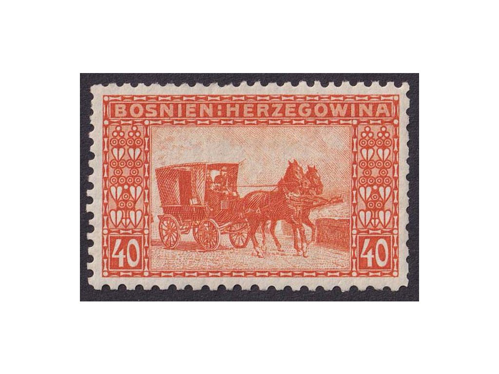 Poštovní známka, 1906, 40 H Poštovní kočár, smíšené zoubkování, MiNr.39, * po nálepce