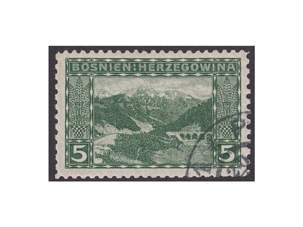 Poštovní známka, 1906, 5 H Krajinka, smíšené zoubkování, MiNr.32, razítkované, krátké zoubky
