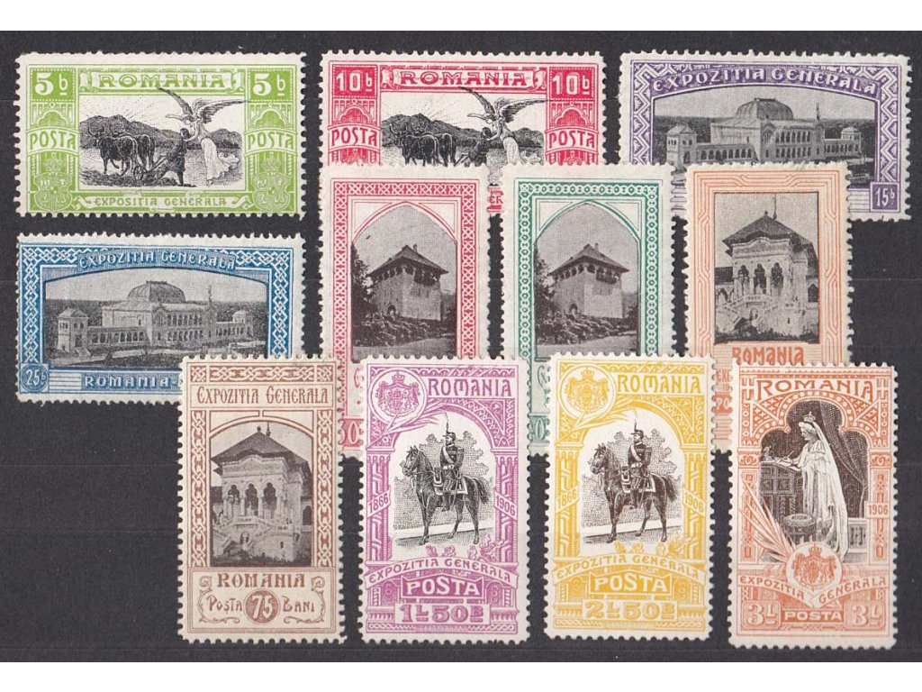 Poštovní známka, 1906, 5B-3L série Jubilejní výstava, MiNr.197-207, * po nálepce, 75B fald, nižší hodnoty několik nálepek - viz. foto