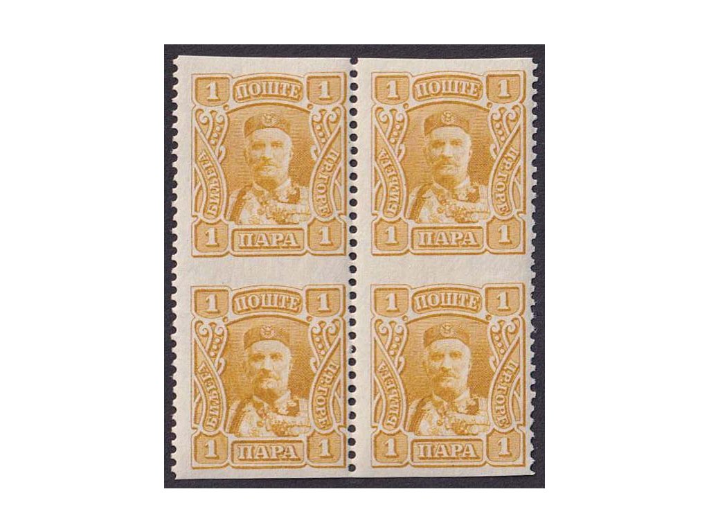 Poštovní známka, 1907, 1 Pa Nikola, MINr.61, ** , chybějící perforace, 4blok