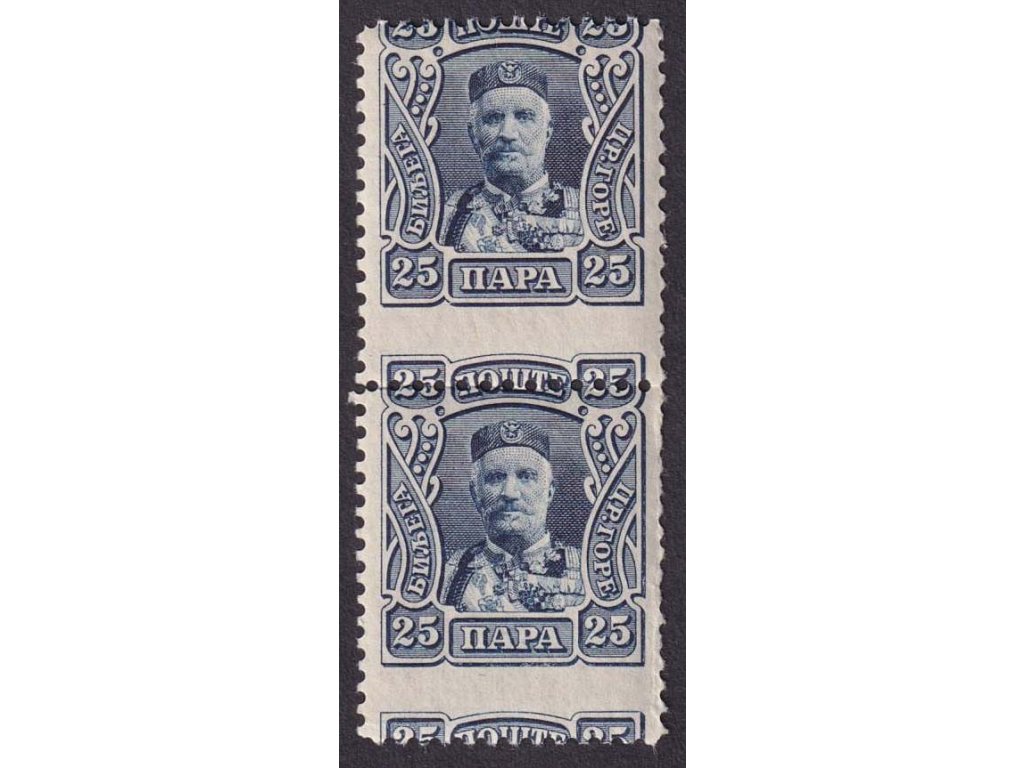 Poštovní známka, 1907, 25 Pa Nikola, MiNr.67, ** , 2páska, posun perforace, dv