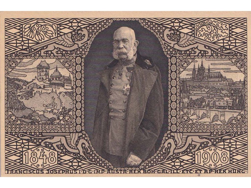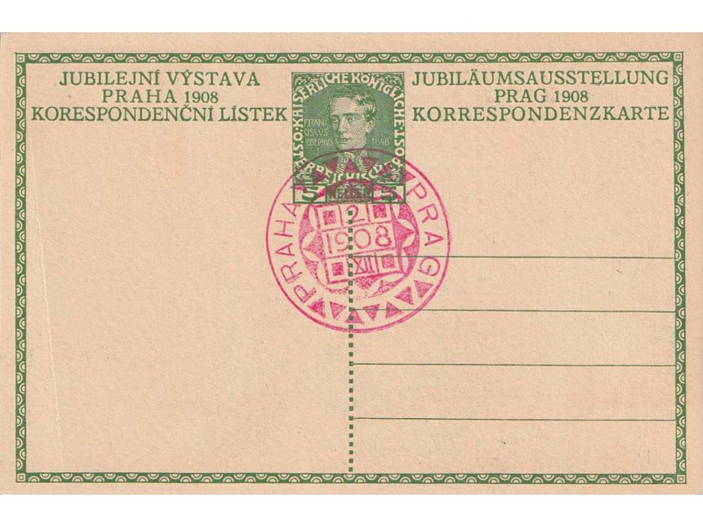 Pamětní razítko, 1908, Praha, Jubilejní výstava, celinová pohlednice 5 H Franc Josef, neprošlé