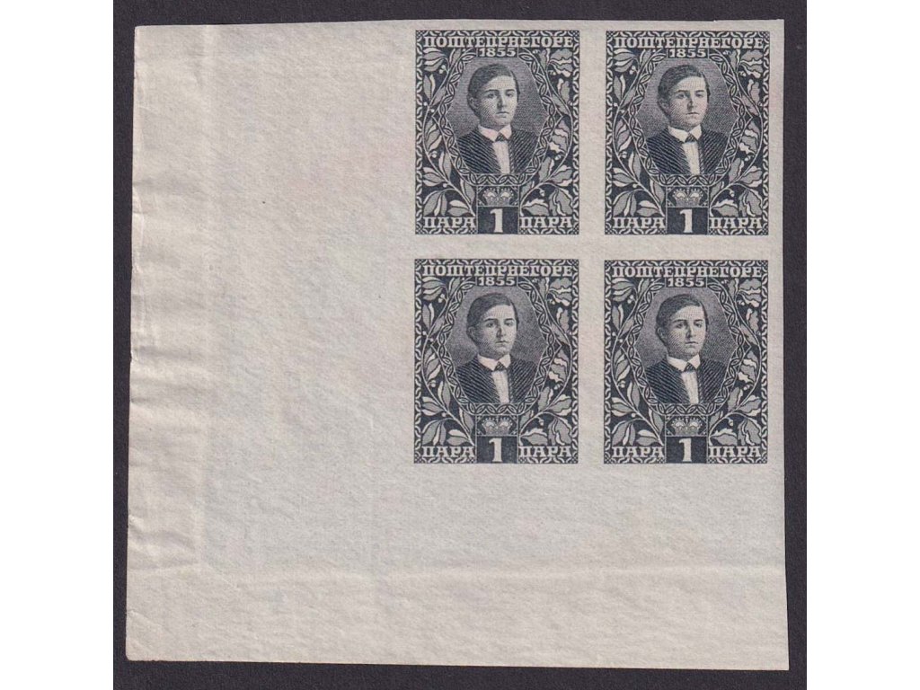Poštovní známka, 1910, 1 Pa Nikola, nezoubkovaná, MiNr.74U, ** , 4blok