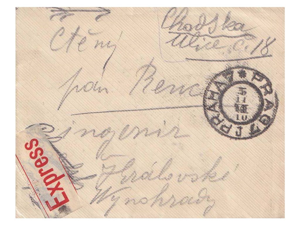 1910, DR Praha, Ex-dopis zasl. v místě, hezká frankatura, stopy provozu